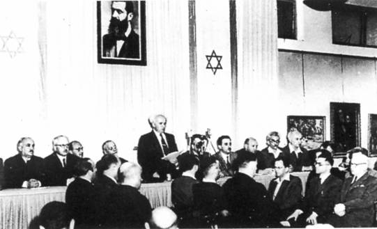 Le 14 mai 1948 à minuit : l’ÉTAT D’ISRAËL est proclamé.